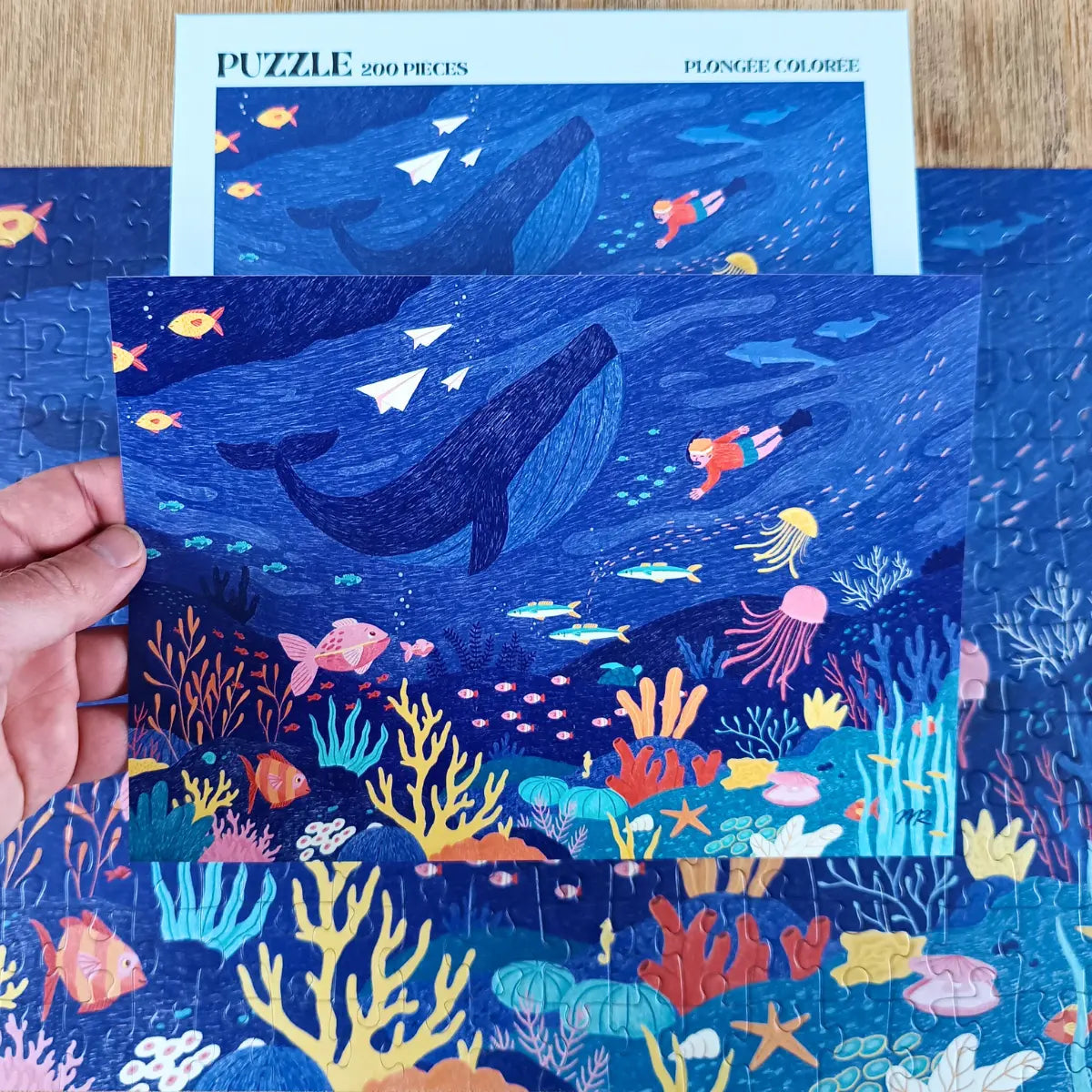 Le puzzle 200 pièces Plongée Colorée a été illustré par l'artiste Mélanie Ramamonjisoa de Studio Syllabe.
